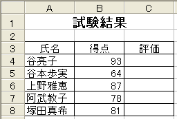 下図のようにワークシートに入力し、評価の欄(セルC4からC8)に