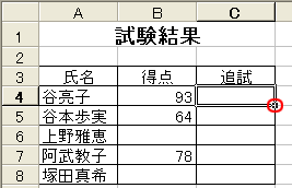 下図のようにワークシートに入力し、追試の欄(セルC4からC8)に ※IF関数と組み合わせて設定しましょう